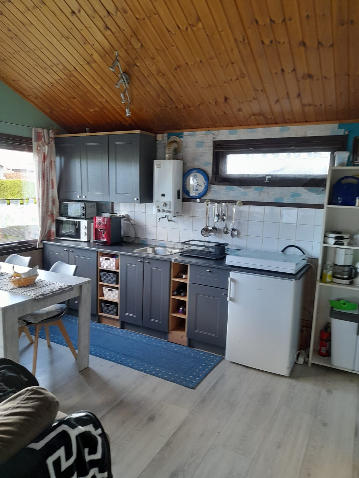Wohnraum mit 4 Flammen-Gasherd, Kühlschrank, Mikrowelle,